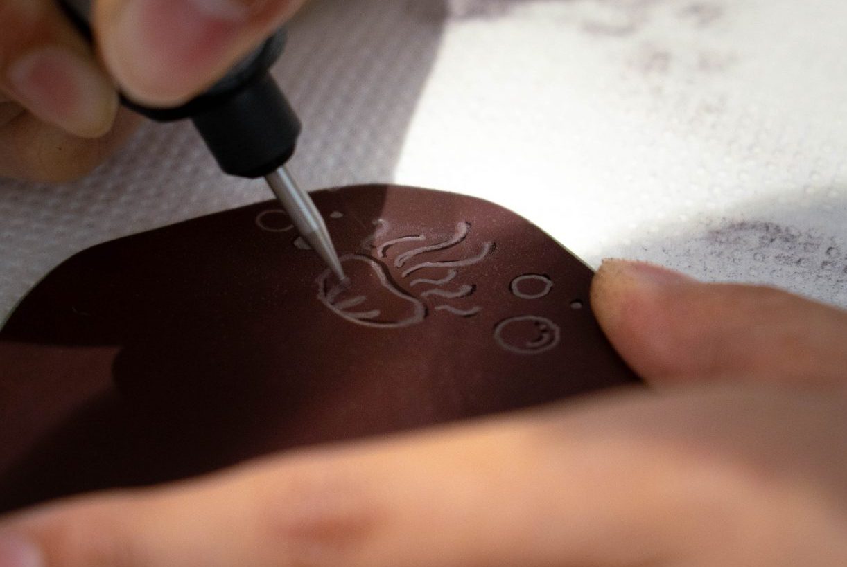 石のはんこに好きな絵を掘って、オリジナルはんこ作り♪
